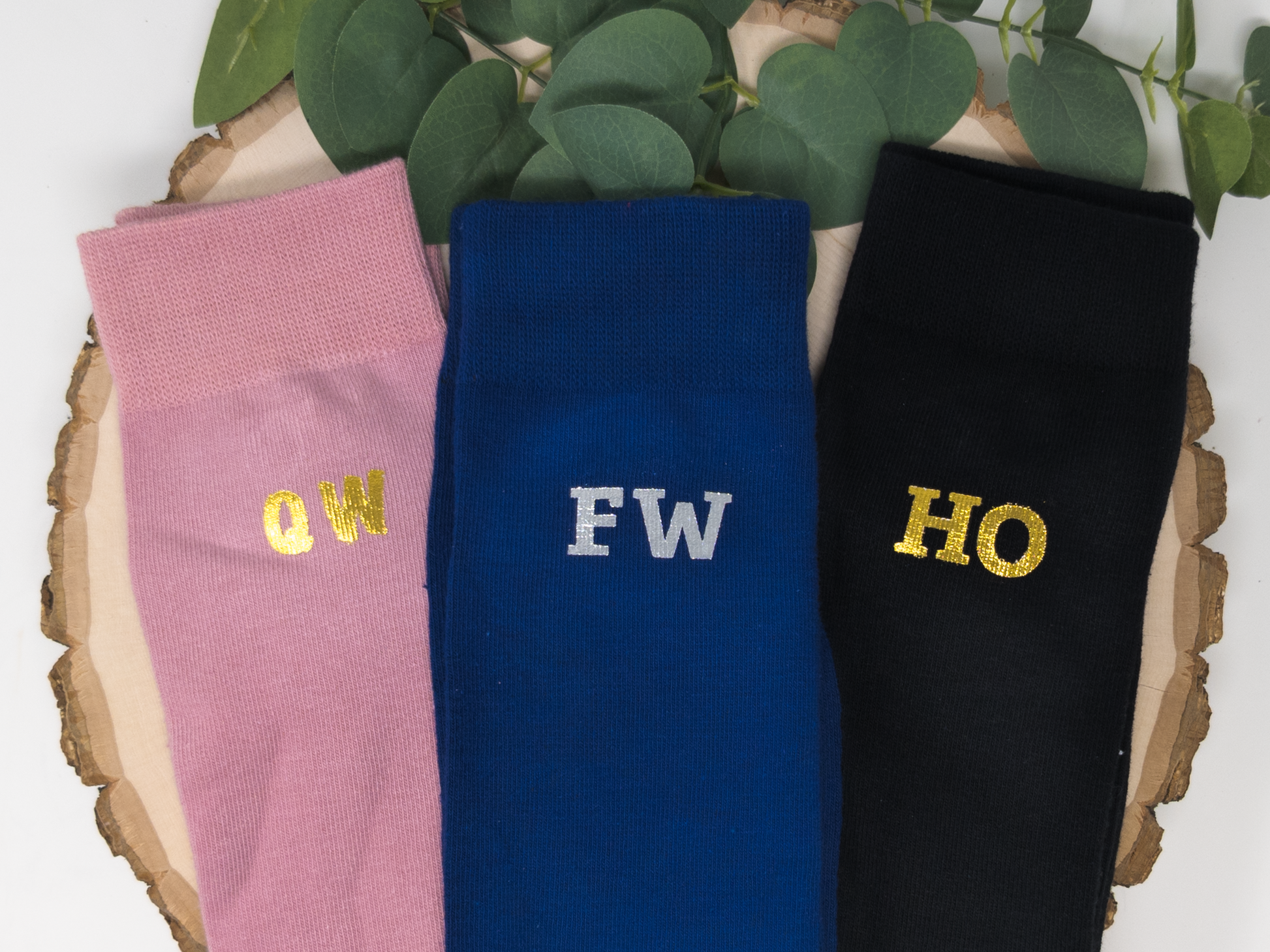 Add a custom touch to your sock game with our monogrammed socks! Choose from three elegant fonts and four stylish colors to make them uniquely yours.