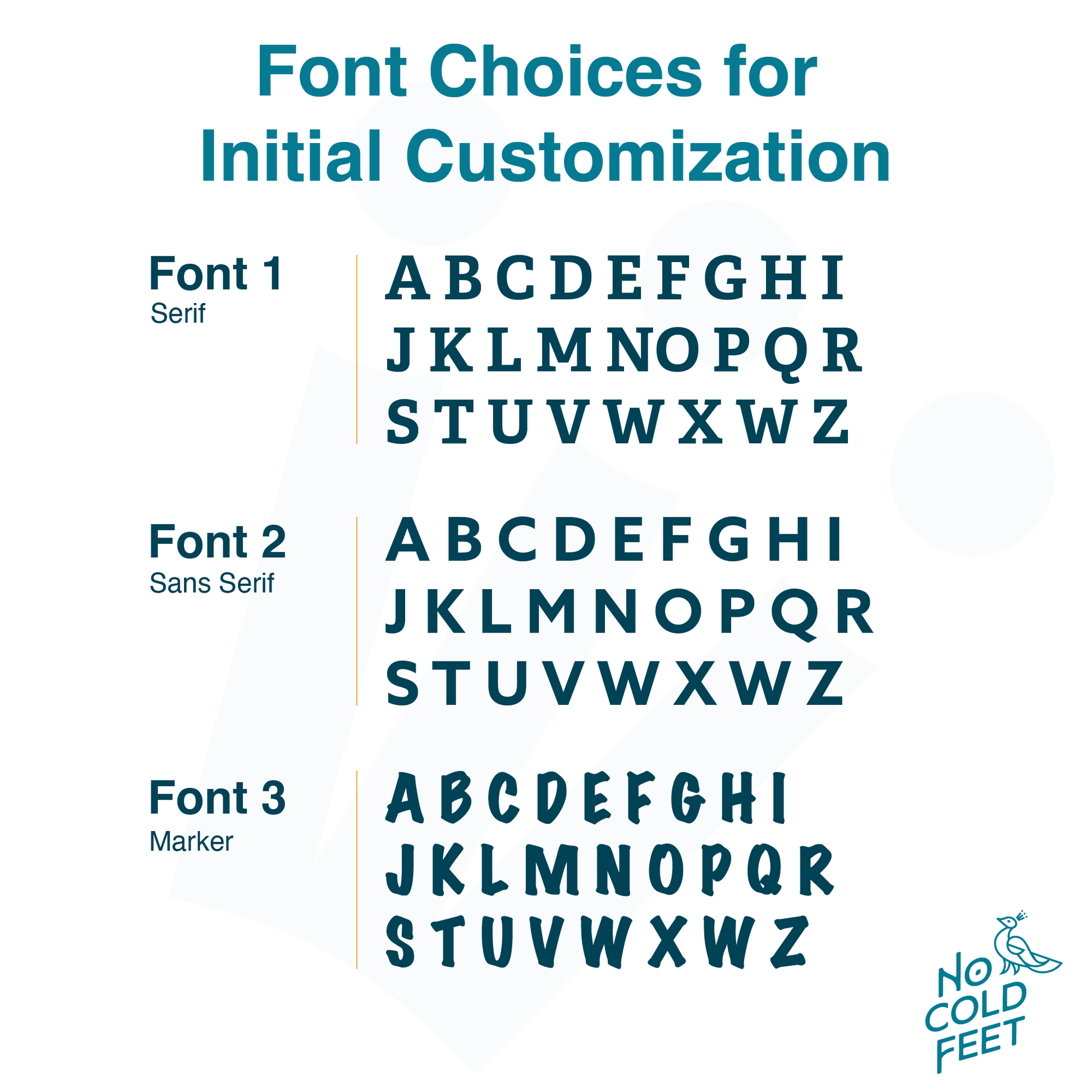 Customizable – Any of our socks can be monogrammed with 2 or 3 letters.